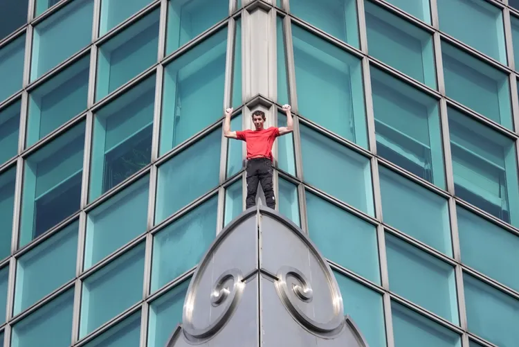 艾力克斯僅花約16分半就攻克難度稍低的基座區1到25層,完成後他也向粉絲揮手打招呼,26層起的竹節區則是難度稍高。