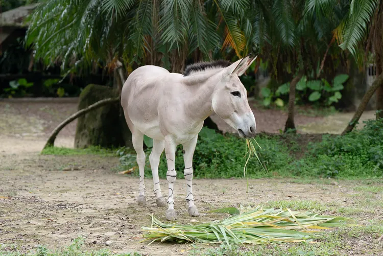 園方指出,今(2026年)為農曆馬年,非洲野驢正是馬科、馬屬家族的一員。非洲野驢臉部、背部及體側覆有暖灰色短毛,腹部與四肢則偏白,吻部呈現由白到灰黑的漸層色,頸部鬃毛短而直立;園內照養的非洲野驢屬於索馬利亞亞種,腿部帶有橫向深色條紋,是辨識個體的重要特徵。