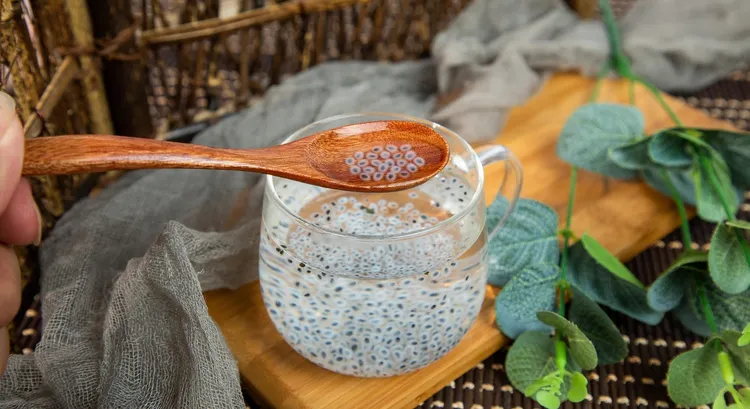 而這個小種子就是羅勒籽,又叫「明列子」或「小紫蘇」,本身是一種高纖維、低熱量的食物,富含水溶性膳食纖維與Omega-3不飽和脂肪酸,泡水後會膨脹到原本體積的二、三十倍,而它最有趣的地方,就是碰到水整個變不一樣,外面那層天然植物膠一吸水,就變成透明滑滑的一層,那層就是水溶性膳食纖維,是腸道最愛吃的東西,腸道菌吃到這種原料,就會開始工作,製造一堆對身體有幫助的訊號分子。
