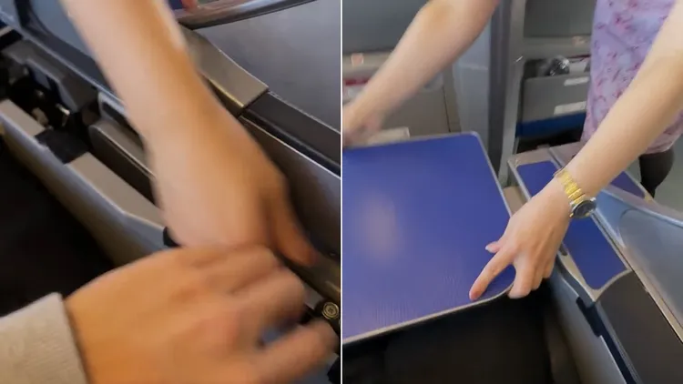 「玩走日本」po出影片顯示,空姐要幫忙打開桌板時,他也伸手要去拿桌板,空姐急忙縮手,他也跟著縮手,空姐又要去拿桌板,他的手也再次伸出來,空姐又快速地把手縮了回去。他發文寫道:「挑戰摸到日本空姐的手手,遇到對方是老江湖...防禦+1000。比土耳其冰淇淋拿甜筒還困難...」。
