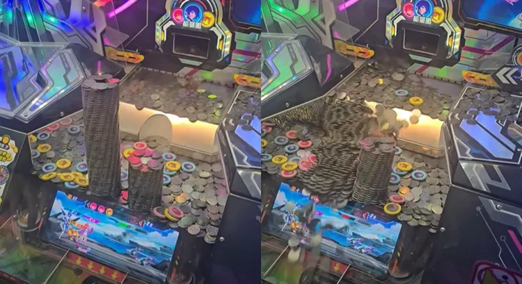 還有內行人表示「機台邊緣就是向上微翹,所以再怎麼推,最後還是會往內倒」、「這樣玩虧爛,相信我,因為我是員工」,也有人發現幣塔是機器堆的,「原來塔是這樣出來的喔,我以為是員工血汗堆的」、「看到後面才知道....原來不是人工堆起來的唷」。