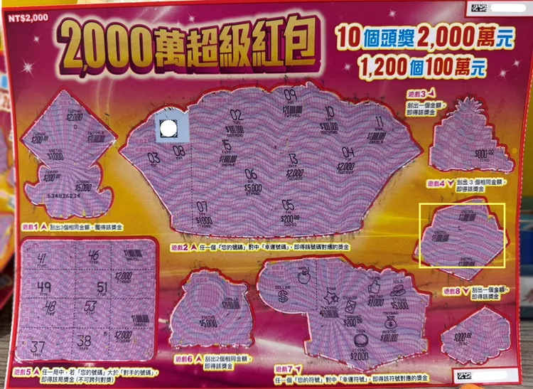 於2月5日幸運刮中「2000萬超級紅包」100萬元的中年婦女,據代理人描述,中獎前一晚她夢見跌入滿是金銀財寶的大盆中,隔日路過彩券行便決定進店試試手氣。