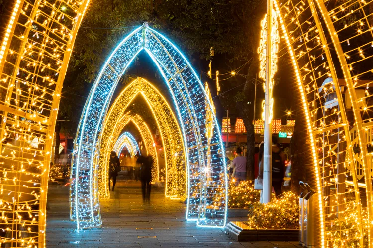 西門展區的宮廟燈組同樣是一大特色,觀傳局指出,省城隍廟的《燈映幸福平安橋》,只要行走其上,如同跨越祝福之路,祈願新年平安順遂;天后宮的《祈福光橋》結合傳統「平安橋」與「鑽轎底」祈福文化,轉化為一座可行走、可體驗的祈福燈組;慈惠堂的《馬上有錢》燈組,以雙馬奔騰和財神爺造型的設計,營造出祥瑞喜慶的街區氛圍。