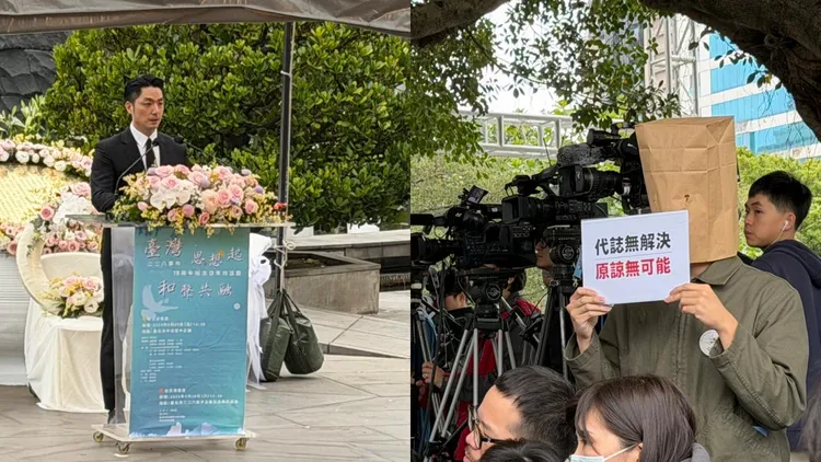 但今日列席中,有民眾頭戴紙袋於蔣萬安致詞時手舉字牌,寫著「代誌無解決,原諒無可能」,直到蔣萬安致詞完畢才起身走出會場。蔣萬安會後受訪時對此表示,北市府將秉持民主價值還原真相,包含今年底出兩本專書整理228受難者小傳等,繼續為民主做最大努力。