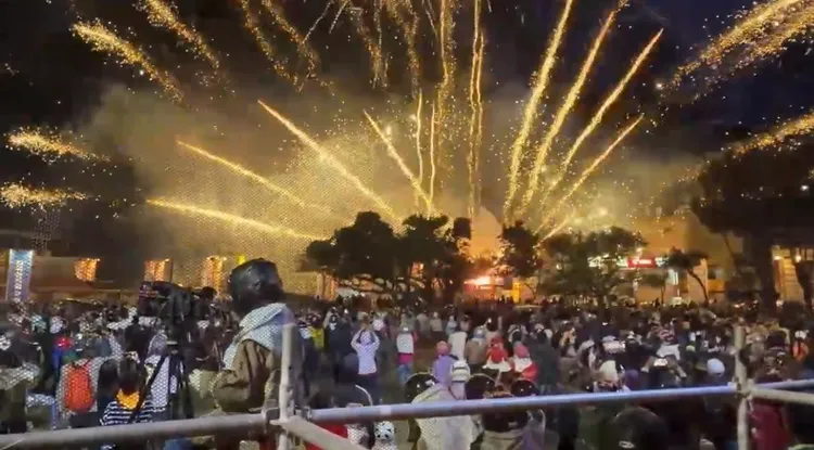 整個小鎮大街小巷「乒乒砰砰」,可說是「炮聲隆隆」,陣陣煙霧瀰漫,晚間7點52分還發生4級地震,但都搖完了手機才收到示警訊息,有人大喊「我就覺得剛剛在搖」,但當下眾人沒躲避還是開心犁炮,也是難忘回憶。