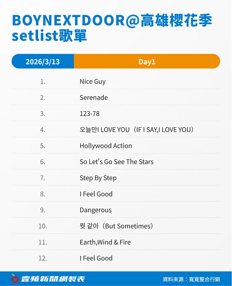 BOYNEXTDOOR@高雄櫻花季setlist歌單