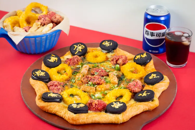 必勝客指出,這次在比薩上呈現經典台味,除了鋪滿了網友票選的鹹酥雞攤必吃排行榜前3名,包含鹹酥雞、魷魚圈以及甜不辣,為還原鹹酥雞風味也特別灑上九層塔、洋蔥、蔥花、胡椒粉等。