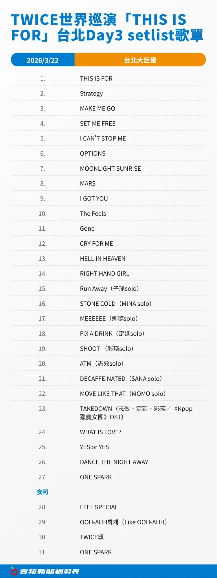 TWICE世界巡演「THIS IS FOR」台北Day3 setlist歌單