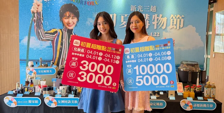 新光三越表示,上半年最大檔期「初夏購物節」於4月1日起登場,將攜手120大化妝品、20大香氛品牌、40大國際名品、500家百貨服飾等超過2600家品牌及11大指定銀行合作,推出前12日化妝品單筆滿3000元送3000點數、首6日名品單筆滿1萬元送5000點數等回饋優惠。