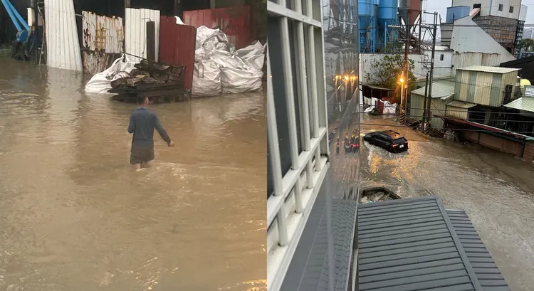 有網友在Threads發文透露,半夜一直被警報嚇醒,起床準備上班看到這景象嚇瘋,大家都還好嗎?只見原PO住家外面已淹成一片,馬路宛如小河,淹水高度差不多已到膝蓋,且家裡面也湧進泥水。