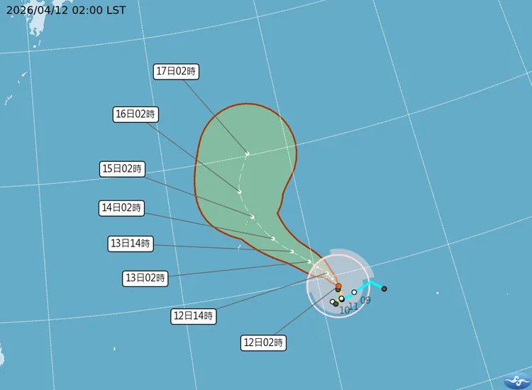 未來天氣部分,4月13日、4月14日各地大多為晴到多雲,天氣暖熱,午後山區有零星短暫陣雨;4月14日午後東北部地區亦有零星短暫陣雨。4月13日至4月14日低溫預測:台灣各地21至24°C,澎湖24°C,金門21°C,馬祖18至20°C;高溫預測:台灣各地28至32°C,澎湖28°C,金門26°C,馬祖22至24°C。