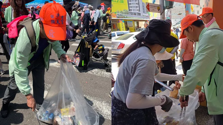 香燈腳說,其實,今年是參與進香的第18年,報名時循傳統在聖母面前擲筊,聖母給予聖筊後,詢問發放結緣品「面紙」,聖母給予笑筊,進一步詢問是否要沿路撿垃圾?聖筊!但因為工作無法請太多假,所以出發日從白沙屯撿垃圾到大甲鎮瀾宮,星期四晚上進火完,從北港撿到彰化竹塘。他說,雖然今年報名人數非常多,負面新聞也不少,但撿垃圾的人變多了,可能因為自己是在隊伍中撿垃圾,因此感覺整體的環境是還不錯的。