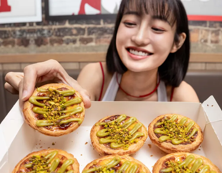 今(23日)宣布,去年7月在香港掀起排隊潮的「開心果脆粒蛋撻」,將於4月28日起在台上市!這次新品將在港版雙層蛋撻基礎上再創新,獨家加入開心果慕斯層,搭配開心果流心內餡、開心果脆粒打造出3層口感