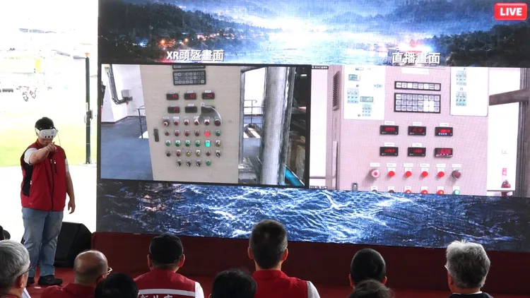 值得一提的是,本次演習首度導入XR遠端操控系統,為全國創舉。透過「虛按實動」操作模式,管理人員可在遠端即時操控抽水設備,不需進入抽水站內部,即可完成機組啟動與調度,不僅提升效率,也降低人員風險,象徵智慧防汛邁入新里程碑。