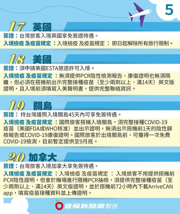 台灣旅客入境英國享免簽證待遇。即日起解除所有旅行限制。