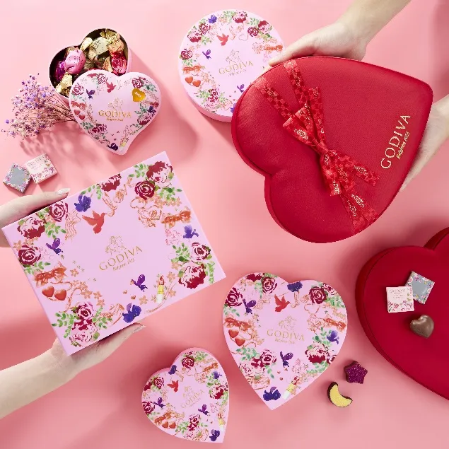 不想再只是友達以上,戀人未滿,GODIVA告白首選情人節巧克力心形禮盒,粉嫩愛心造型就像丘比特的愛神之箭,瞬間喚醒心中浪漫綺麗的回憶。6顆裝售價1190元、11顆裝售價1890元;想讓感情升溫,選浪漫巧克力心形禮盒或情人節巧克力禮盒準沒錯。浪漫唯美的愛心、玫瑰環繞,明亮而優雅的筆觸真摯描摹如熱戀般蓬勃的欣喜之情,帶來情人節最別緻的禮盒,適合送給摯愛的另一半, 情人節巧克力禮盒18顆裝售價2590元、浪漫巧克力心形禮盒15顆裝 售價3690元。