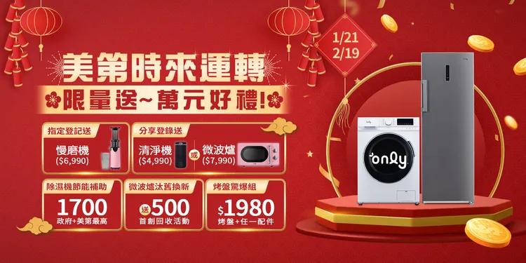 美第讓您時來運轉!購買指定機型再送慢磨機、清淨機、微波爐