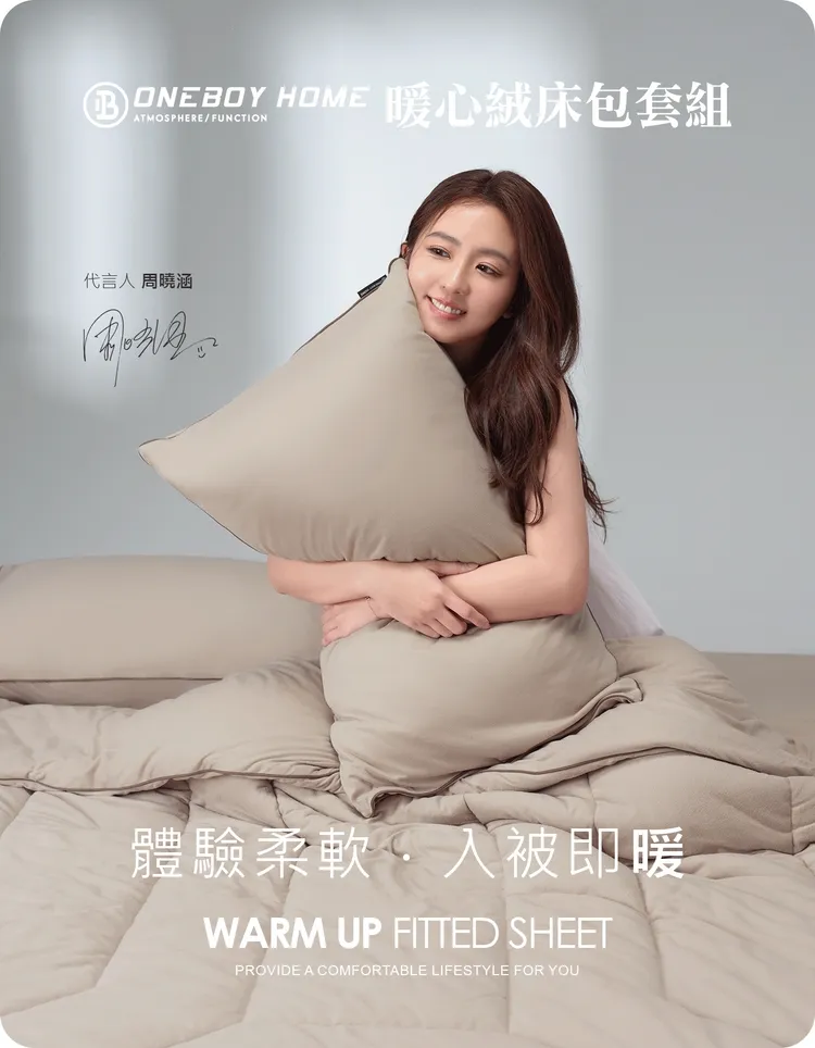 被子暖了,床包枕套當然也要跟上!「Clo+升溫科技抗菌蓄熱暖心絨床包套組」和暖心絨被一樣CLO值高達5.43,躺上那刻不會有被冰到的感覺:舒適柔軟親膚,耐磨不易起毛球,且薄暖兼具不厚重,無論洗滌、晾曬、收納都豪不費力;全面抗菌材質及安全無毒嬰兒級別面料讓你天天睡得安心!還有許多小巧思,例如床包使用全覆式鬆緊帶,不易鬆脫或睡出皺摺,右下角還有品牌小標籤,更換時方便快速找到正確位置,這些貼心設計真的如產品名般超暖心!