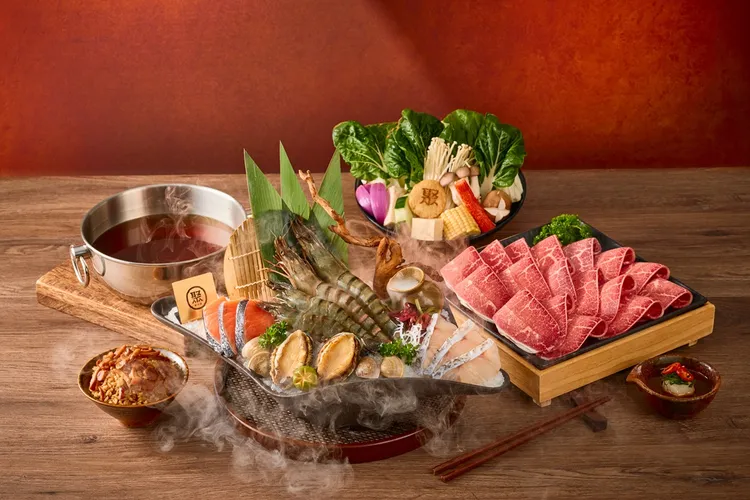 海鮮狂粉有福了,「聚 日式鍋物」新推出兩款雙人餐,霸王草蝦雙人海陸特盛和旬鮮全魚雙人海陸特盛,搭配肥美鮑魚、當季旬魚、蛤蠣等多款鮮物,並提供雪花豬和板腱牛兩種選擇,雙人餐1398元起,推薦搭配元氣御膳湯或清香牛骨湯,增加鮮中帶甘的溫潤口感,襯托出海鮮的甘甜。
