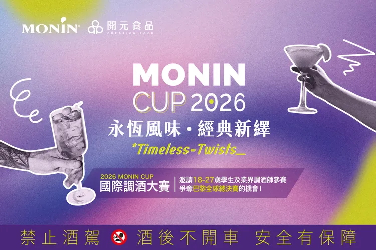在霓虹閃爍的吧檯後方,調酒師揮灑的不僅是酒液,更是對生活與風味的深刻理解。隨著台灣酒吧文化在國際舞台嶄露頭角,調酒早已從單純的技術展示,昇華為一場關乎敘事、美學與個人風格的綜合競技。由法國百年風味品牌 MONIN 與開元食品共同策劃的「2026 MONIN CUP 國際調酒大賽」,台灣區賽事即日起正式啟動,目標尋找下一位能站上巴黎總決賽舞台的潛力新星。
