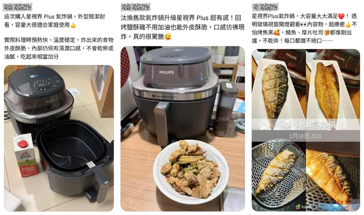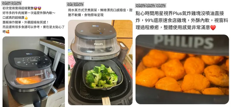 從募資熱銷到正式上市,「飛利浦星視界Plus透視蒸氣海星氣炸鍋」不只是話題商品,更是許多家庭已經認證的料理神器。許多網友分享「以前要分開做的料理,現在一台搞定,超省時間」、「透明視窗真的很加分,料理過程一目瞭然」、「氣炸+蒸氣真的太神,雞腿外酥內嫩完全不柴!」由此可見新機能一鍋到底完成料理、菜色更多元、有視窗能隨時看到食材狀態等特色,正好補足傳統氣炸鍋長期以來的使用痛點。
