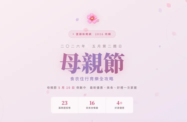 《壹蘋新聞網》2026年母親節優惠專頁https://special.nextapple.com/mothers-day-2026/