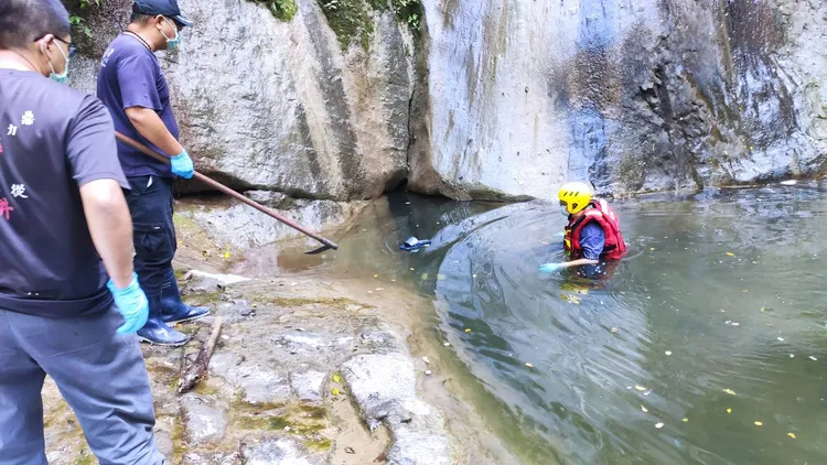 消防局勤指中心上午9時57分,接到110轉報,楠西區龜丹里阿拉溪斜瀑布下方水池有人溺水,由於山路車輛無法通行,警消與救護人員以步行方式抵達現場後,將浮在水面男子打撈上岸,經檢視人已無生命跡象,未送醫,交由警方處理。
