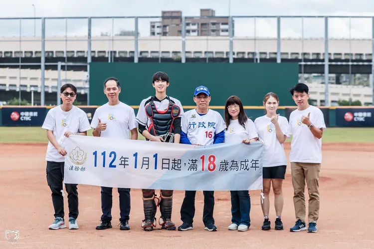 明年1月1日起,《民法》成年年齡將正式從20歲降為18歲,蔡清祥在球場上預祝即將滿18歲的青年學子們,一起迎接新制上路的歷史時刻。