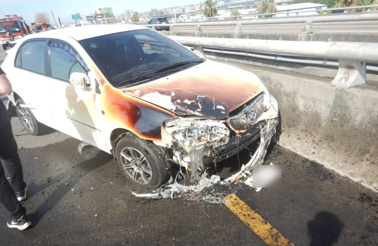 根據後方行車紀錄器畫面,當時小貨車沿內側車道行駛,幾乎未減速,直接撞上停在內側車道的白色轎車,轉了270度後波及右側中線車道轎車停住,下一秒小貨車就竄出火勢,整輛車陷入火海。