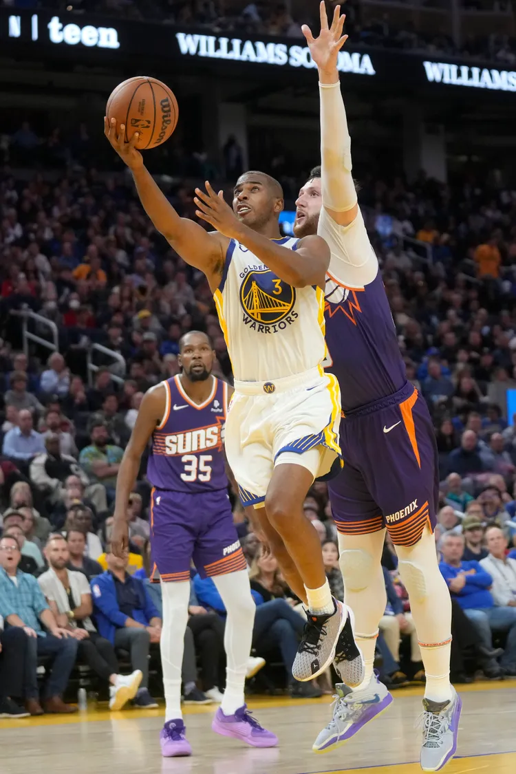 勇士上半場進攻就不順,但太陽射手布克(Devin Booker)半場就飆21分,幫助太陽取得15分領先,第3節勇士在新同學保羅(Chris Paul)穿針引線之下,一度超前比數,但外線持續不振,第4節保羅2記關鍵3分球都沒進,勇士吞下首敗。