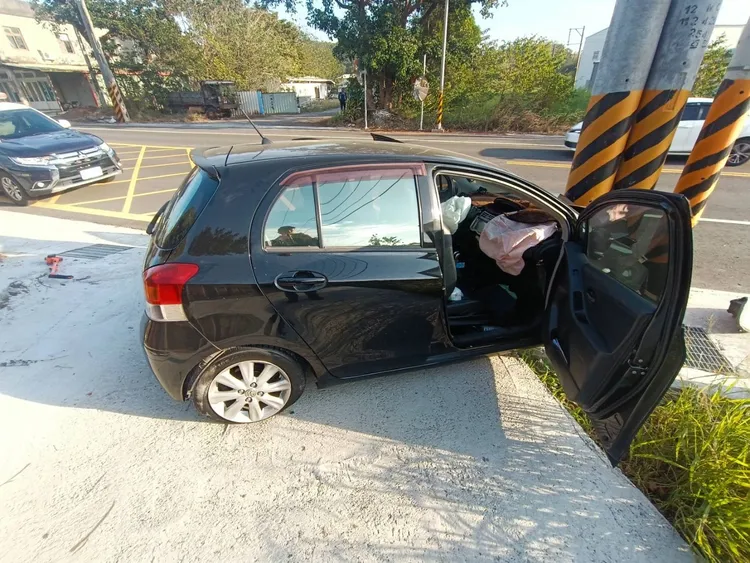 苗栗縣消防局及通霄警分局接獲報案抵達現場,發現自小客車正面撞擊電桿,力道猛烈,車頭嚴重扭曲變形,前座2個安全氣囊都爆開,駕駛及前座乘客受困車內。