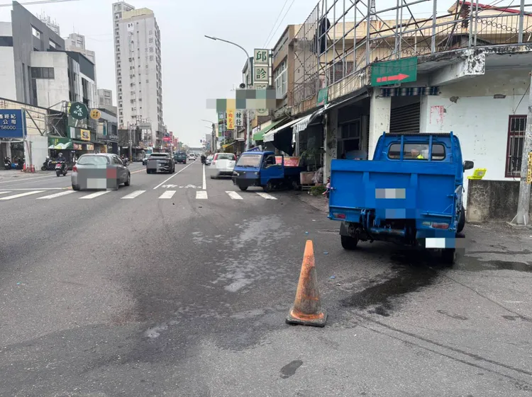 余男小貨車撞擊後車身劇烈晃動,向前滑行一段才停下,陳男的小貨車卻失控往路旁衝去,撞進正在營業的麵攤,攤商跟民眾反應及時,趕緊閃避躲過一劫,事故中未有人受傷,僅有車損、財損,但也把當事人嚇出一身冷汗。