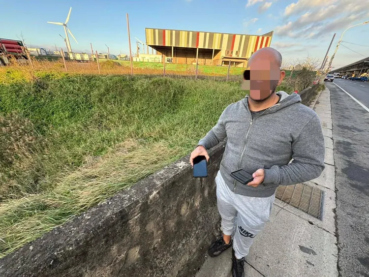 經過查詢定位後得知男子的手機疑似掉落在台61線快速道路橋下,隨即陪同他前往定位地點,沿途仔細搜尋路邊、草叢等可能掉落位置,並不斷更新確認定位資訊,總算在許厝港路與台61線路口附近找到男子的手機。