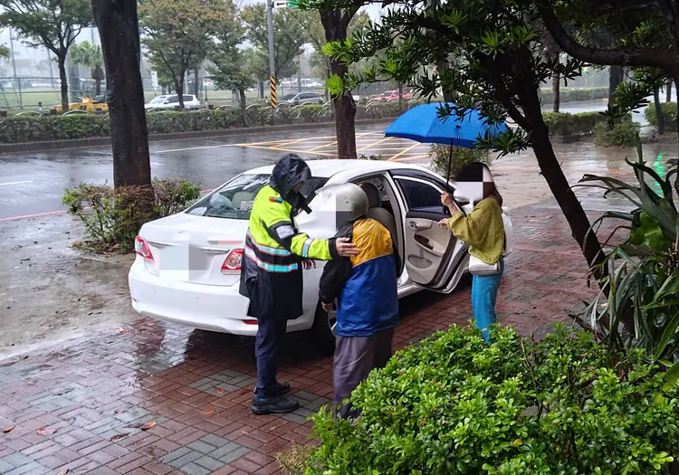 大約20分鐘後,陳、林2員在中壢區大智路與大安街口發現緩慢騎行的謝姓老翁,惟因當時天候不佳,謝翁已全身淋濕,所幸精神狀況尚可;2員遞上雨衣,並以巡邏車護送他前往派出所,隨後通知家人前來把他帶回家。