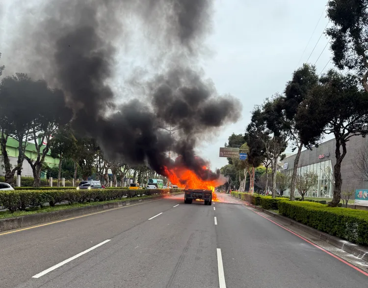 中壢警分局表示,由林姓男子(59歲)駕駛的聯結車今天下午16時25分許行經中壢區中園路段時,車頭不明原因起火燃燒,還好林男及時下車逃生,並未造作人員傷害,也未波及往來車輛。