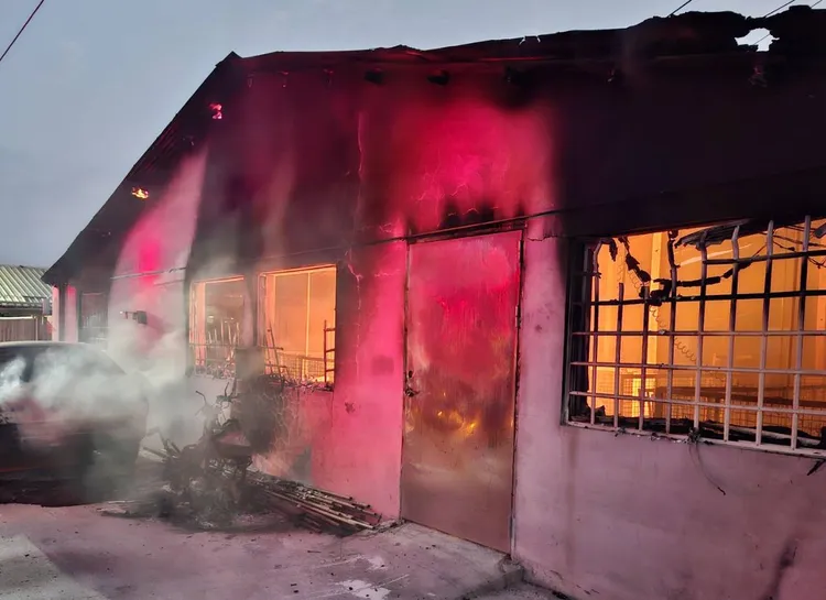 【記者莊曜聰/台南報導】台南市後壁區一處豬舍今天清晨突然傳出火警,警消據報趕往現場灌救,到場時豬舍內部已經陷入火海,還波及停放在外面的轎車,消防員佈線射水滅火,火勢約花5分鐘撲滅,雖然無人傷亡,但飼養的上百頭小豬活活燒死,豬農聞訊欲哭無淚,詳細起火原因有待調查釐清。