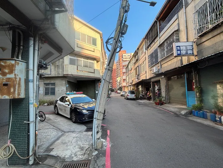 原來是一輛載送瓦斯的貨車倒車時撞上電線桿導致歪斜,駕駛雖曾下車查看但卻未報警及留聯繫方式便離去,警方調閱沿路監視器畫面,比對貨車行駛路線,鎖定肇事車輛後,循線通知51歲駕駛李男到案說明。