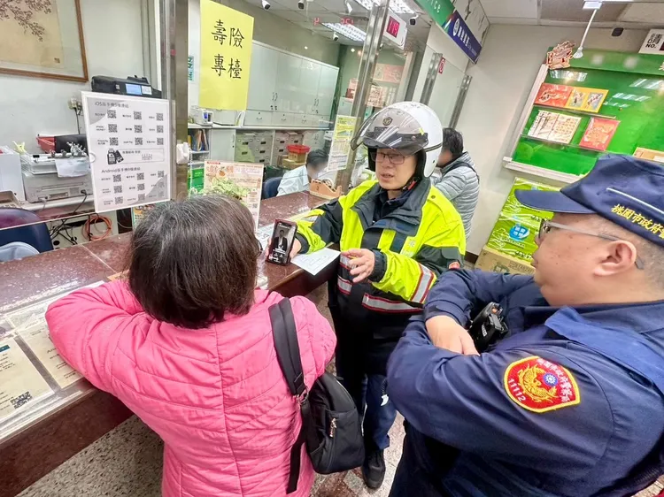 龍潭警分局表示,聖亭派出所巡佐傅錫城、警員劉憬霖及王瑋綸日前接獲郵局通報,邱姓婦人(65歲)欲提領102萬元現金疑遭詐騙,經趕往現場了解,邱婦起初向警方表示,提領款項係用於「娶媳婦」,惟當警方進一步詢問迎娶相關細節時,婦人卻支吾其詞、說法反覆。