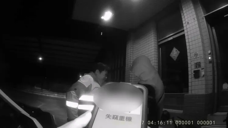 雙方對話過程中,1名員警拿出掌上型電腦查詢陳男機車車牌,發現螢幕上竟顯示「失竊重機」,當下不動聲色,將掌上型電腦拿給另名女警,當場依現行犯逮捕陳男,帶回派出所偵辦。