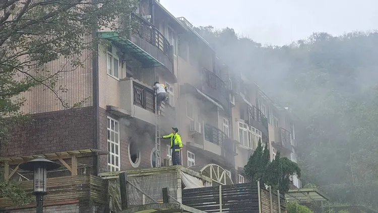 據了解,今天上午消防局獲報後,派出百福、暖暖、七堵、安樂分隊及第二大隊等分隊前往七堵綠葉山莊,到場發現建築已竄出濃煙,屋內2人則逃至3樓陽台處待救,對此,警消不敢大意,第一時間佈設水線並嘗試利用逃生梯救援,最終於10時06分將人救出,初步檢傷2人均無明顯傷勢,但仍預防性送往汐止國泰醫院。