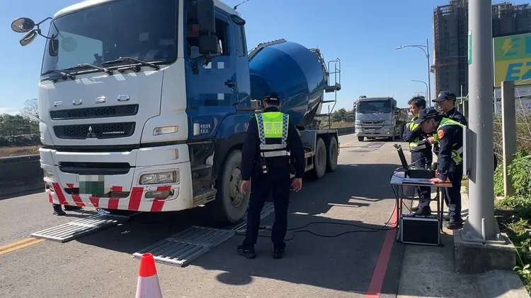勤務期間,警方利用移動式地磅進行現場秤重,強化超載取締作為,經查發現4台砂石車及2台水泥預拌車超載,已違反道路交通管理處罰條例第29條之2規定;另有7台砂石車未依規定申請通行證,擅自行駛管制路段,違反同條例第60條第2項第2款,警方均依法當場舉發,並責令相關駕駛人及業者改善。