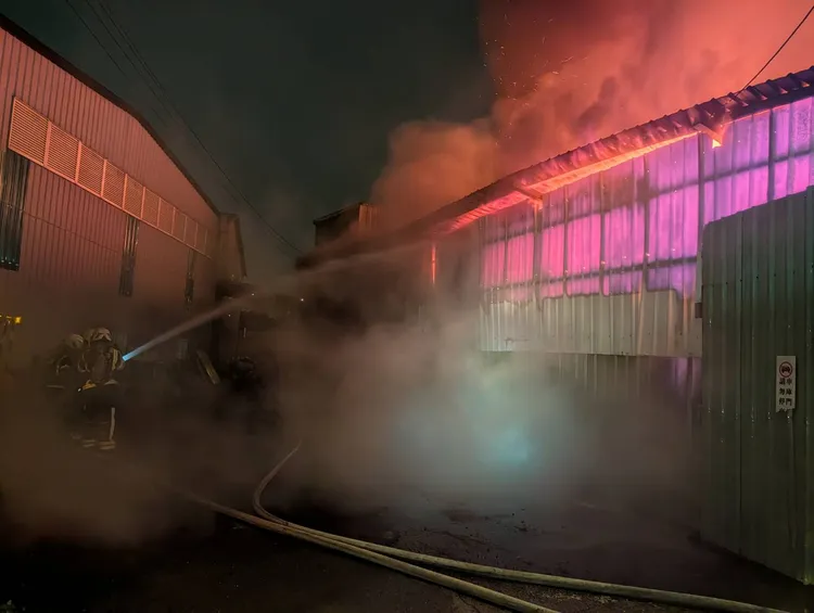 桃園市消防局表示,中壢區中園路一家工廠今天凌晨0時許發生火警,出動消防人員100名、消防車40輛、救護車2輛到場,現場為地上1層鐵皮結構建築物,消防人員抵達後已全面燃燒。