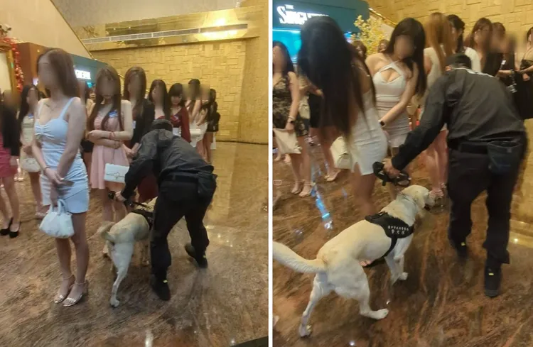 第五分局共動員62名人力,還出動LaLa、Dottie兩隻警犬,以「又萌又殺」的專業模樣穿梭在酒店大廳及包廂間,靈敏嗅聞有無不法違禁品,嚴肅執法中帶著親民氣息,吸引現場目光,也同步達到震懾不法的功能,守護大家平安過好年。