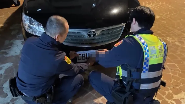 交通大隊表示,直屬中隊警員昨晚在蘆竹區文中路一段前設置酒駕勤務攔檢站,針對來往可疑車輛實施過濾盤檢,執勤過程中,發現一輛自小客車未依規定使用燈光(霧燈),隨即上前攔停示意停車接受檢查。攔下車輛後,該名越南籍范姓駕駛神情略顯慌張,面對詢問都支吾其詞,且無法出示足資證明身分的文件。