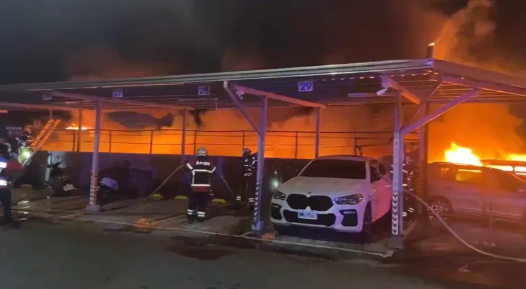 台南市消防局18日晚間7時許接獲報案,安南區培安路巷弄內有火燒車事件,起火處疑似為二手車輛暫置場,消防局共出動33車72人馳援,還有40名義消前往支援,大隊長休假也趕回現場救災,到場時發現是1樓鐵皮建物,作為流當車暫置場使用,停放大量汽機車,已經陷入全面燃燒。