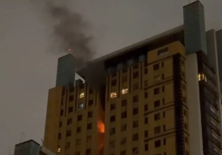 整起火勢在30分鐘內撲滅,初步勘查火場,研判是22樓工作陽台冷氣機不知何故起火,燃燒面積約10平方公尺,後續將由火調科人員調查釐清起火原因。