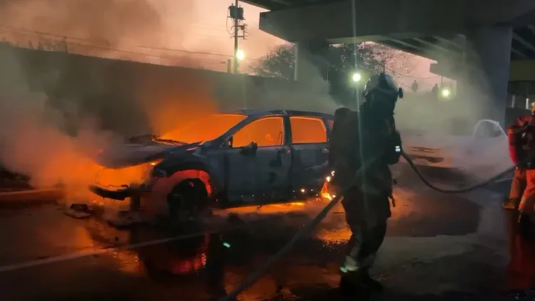 新竹警消傍晚5點54分獲報,左岸棒球場旁有汽車燃燒,消防人員於現場發現1名55歲女性民眾疑似要輕生,於車內有燃燒行為後離開車輛,最後燒掉自己的車輛,並波及前後二台車,共3台汽車。