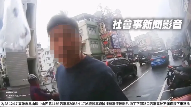 社群網路貼文指2月28日在鳳山區中山西路有自小客車與普重機車行車紛爭案,一輛小客車在機車前突然變換車道,後方機車插電撞上,緊急煞車,並長按喇叭,小客車駕駛稍後停車怒嗆騎士「你沙小!」,騎士反擊說「是你先剪過來的(變換車道)!」