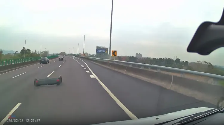 民眾在Threads上傳影片,228當天行經國三時遇到前車掉落保險桿,事後發文「噴裝啦~高速公路丟道具當瑪利歐賽車開喔😱😑😡,還好那台車超過的第一時間就注意到,飛出來的當下就準備要閃了,不然超危險的欸!」