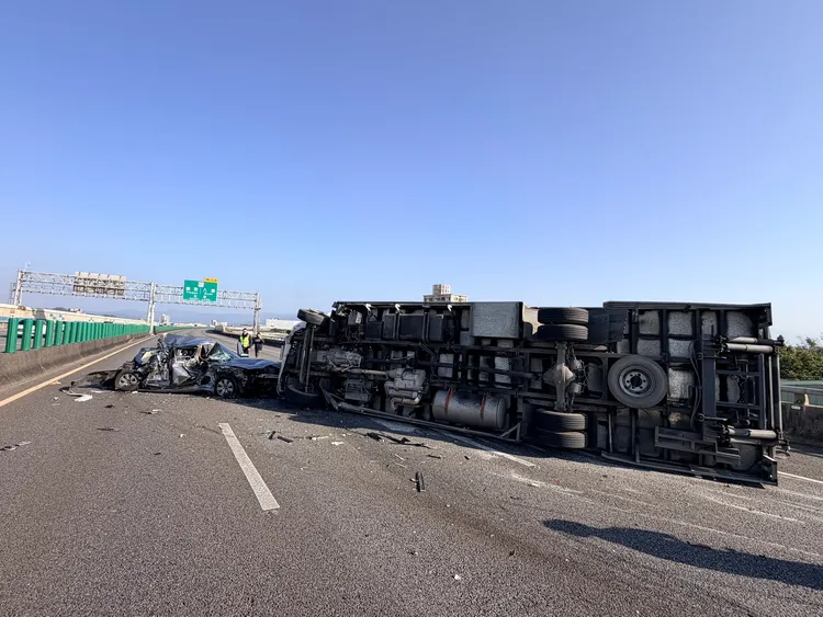 【記者李易昌/桃園報導】國道2號東向16.8公里處,今(13日)下午近4時發生7車追撞,現場為1部大貨車、2部小貨車、4部小客車追撞,造成6輕傷,目前全線車道封閉,由於臨近下班時間,籲請用路人提早改道行駛,車禍原因仍待釐清。